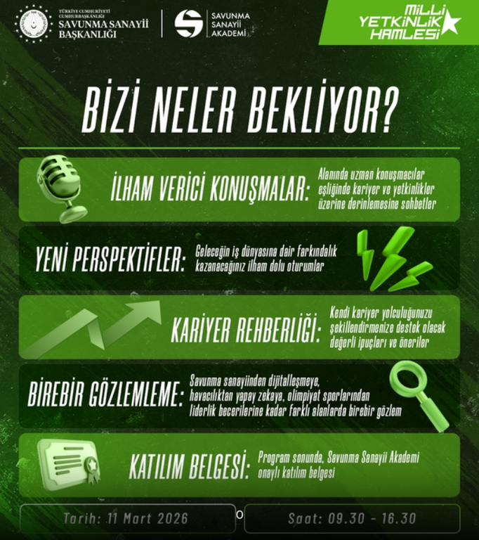 Within the scope of the National Competency Initiative Project carried out by the Presidency of Defence Industries, the third event of the “Career and Competency Meetings” program will be held in order to contribute to university students’ career development and enhance their competencies.